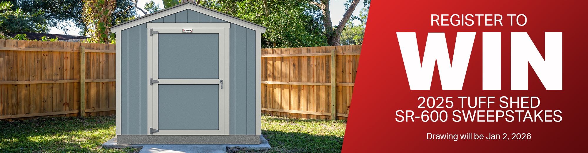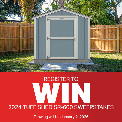 Enter your contact information here for a chance to win a Tuff Shed 8’x8′ SR-600 building.
